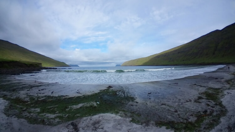 Men vi har ikke tid til at se på færøsk fodboldungdom, for vi skal tjekke om vores øjne tog fejl, da de spottede en strand.