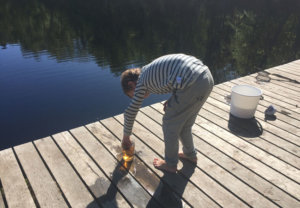 Isak er spændt. Fiskenettet ligger gennemblødt ved siden af hans højre fod, og hans hænder roder ivrigt efter første fangst. Vi taler telttur, overnatning, fisk, smådyr, snakke ved bålet og hygge i naturen.