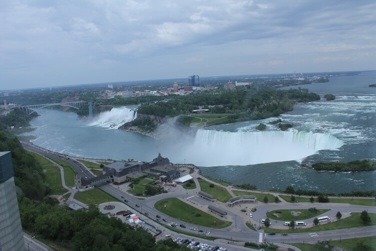 Vi boede på hotel Niagara Falls Marriott Gateaway on the falls. Husk at bestille fallsview. I den omkringliggende by er der gode muligheder for at finde alt-hvad-du-kan-spise restauranter til både morgenmad og aftensmad.