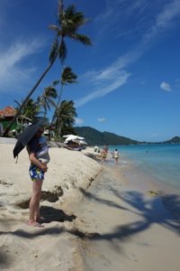 Mandens tjavsede hår virrer i vinden. Han sidder på ladet af en bedaget lastbil på færgen mellem Surat Thani og ferieøen Koh Samui. Munden flækker i et tandløst smil, mens en dreng forsøger at fange vores opmærksomhed ved at falbyde en håndskåret vandmelon strøet med salt og sirligt lagt i en plasticpose med en engangsgaffel.