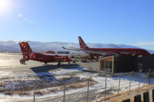 Før i tiden handlede det om at rydde landingsbanen for isfjelde og isskosser, der er store flager af hård is, før et fly kunne lande. Men i 1979 blev den første egentlige lufthavn anlagt i hovedstaden Nuuk, og siden 2010 er indenrigsflåden blevet befløjet med det miljøvenlige Dash 8 fly, der – selvom de ryster gevaldigt – flyver sikkert på de fleste ruter i Grønland og ruterne til Island og Canada.