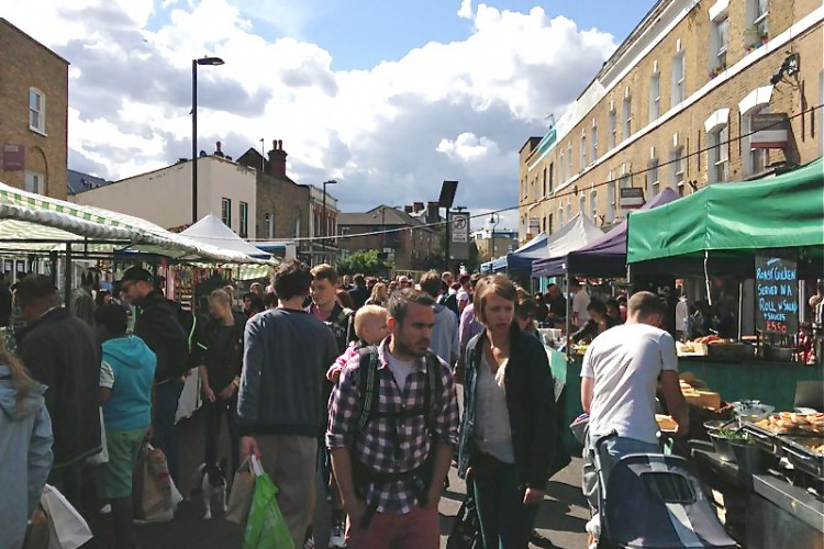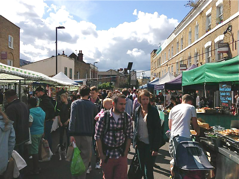 Jeg var til min vens surprise party for et par weekender siden i Hackney, East London. Et skønt område både hvad mad og mennesker angår. Jeg sidestiller det lidt med Vesterbro, hvis det altså tåler sammenligning… Her er i hvert fald rigtig mange farverige mennesker og nationaliteter. Hvilket gør det til et fantastisk levende område efter min mening. I Hackney finder du også det ældgamle Broadway Market, som har eksisteret siden 1890’erne.
