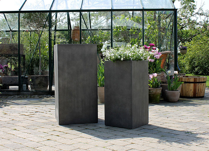 De smukke designkrukker fås i en håndfuld forskellige overflader og farver. Derfor er de også nemme at tilpasse din have og dens stil. Ydermere falmer krukkerne ikke i solen og tåler også frost, hvis du dræner dem korrekt.