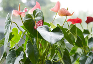 Flamingoblomsten findes i mange forskellige røde nuancer og er med sin markante form en plante, der vinder frem som potteplante igen.