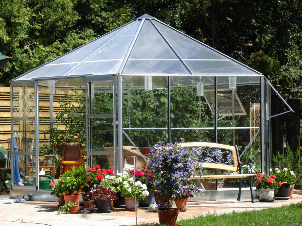 Hvis du har terrassen, så har hobbydrivhuse.dk pavillonen, der kan skabe en ekstra oase og udvide sæsonen i solen. Her kan du sidde i læ for blæst, i ly for regnen og dugfrit i de sene aftentimer. Samtidig sikrer et praktisk polycarbonat tag, at solens stråler bliver brudt, så pavillonen ikke bliver overhed i middagssolen og svitser planterne, mens materialet virker isolerende om aftenen. En oplukkelig taghætte i alle pavilloner fra hobbydrivhuse sikrer ligeledes, at du altid kan lede varmen ud og hindre kondensdannelse. Et uundværligt element i en pavillon, men en løsning som mange producenter ikke har inkorporeret!