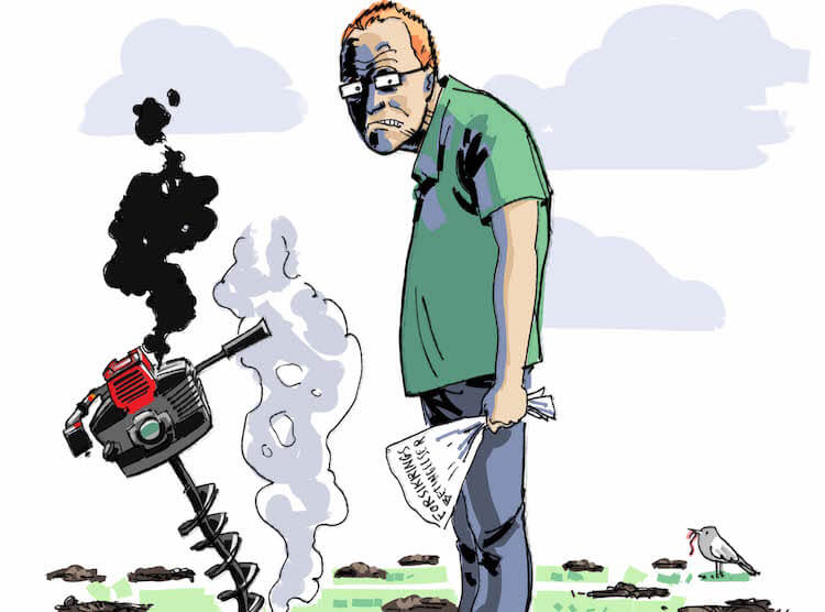 Jeg havde ellers lagt optimistisk ud med at leje et motoriseret hulbor, der larmede som et vejarbejde og blot stod stille, mens det sendte mig i omdrejninger om borets akse, da det begyndte at støde på ler.