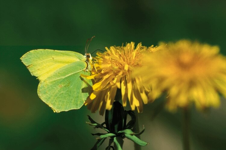Citronsommerfuglen er en af de få overvintrende danske som merfugle. Derfor møder vi den ofte i det tidlige forår – på de lunere dage i marts og april.