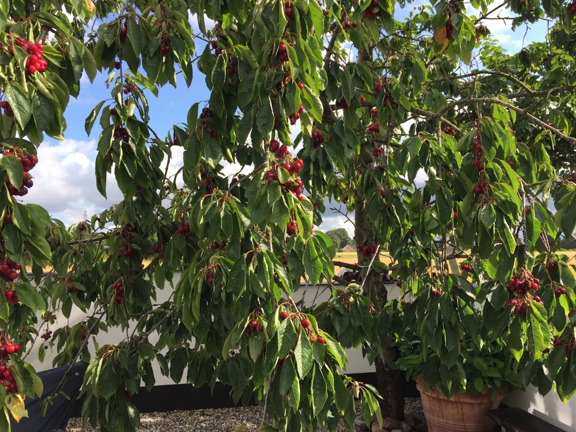 Efter et par timers rengøring af både træ og gårdsplads, så alting nogenlunde normalt ud igen, men væk var alle kirsebær og vi kunne kun drømme om at træet ville bære lige så mange bær til næste år.
