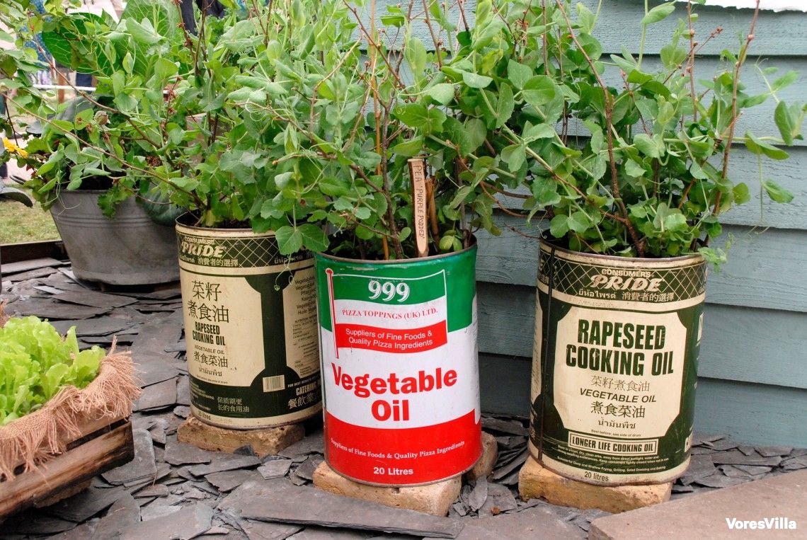 De er forkultiverede og vokser i bakker, så du bare skal finde nogle beholdere at plante i. Det kan være krukker, kasser eller som her gamle dunke fra olivenolie. Brug en god krukke- og pottemuld, som du finder på planteskolen. Det betyder alt for et godt resultat. Husk at bore huller i bunden, så overskydende vand kan løbe ud.