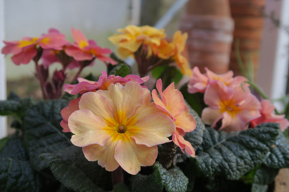 Primulaer hører til de dejligste forårsbebudere, og selvom de ser sarte ud, er de nogle af de første planter, der kan plantes i krukker. En af de nyere sorter er Primula ‘Peach Melba’, der har blomster med et farvespil som sukkerkogte ferskner og hindbærpuré – ligesom den kendte dessert.