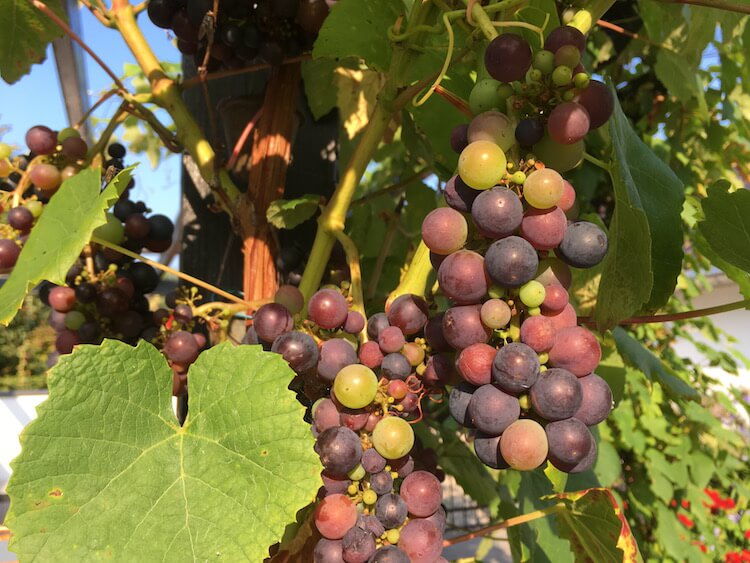 I løbet af sommeren kan du klippe din drue tilbage, når der sidder for mange klaser på en sidegren. Lad 7-8 blade sidde tilbage over hver klase så de kan tiltrække solens stråler og producere sødme.