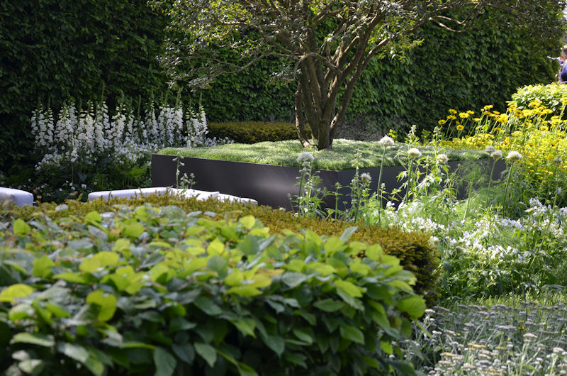 Skærmplanter var en gennemgående yngling på plantesiden, specielt den yndefulde vilde kørvel med de mørke stængler, sammen med stjerneskærm og de tidligt blomstrende akelejer i et væld af forskellige sorter. Høje slanke blomsterspir som sølvlys, kongelys og fingerbøl bruges til at skabe form i højden.