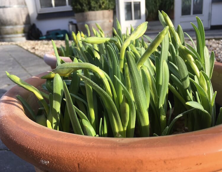Påskeliljer kan vi næsten ikke få nok af i marts. Men desværre står de ikke ret længe inde i vores varme stuer, når de først re sprunget ud. Stiller du dem derimod udendørs i en krukke, har du glæde af dem i mere end en måned. De kan sagtens tåle en smule nattefrost og du har glæde af både knopper og senere blomster meget længe.