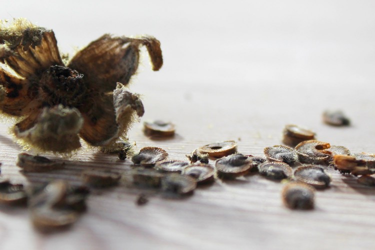 Når jeg har plukket et par frøkapsler af mine yndlingsstokroser, lægger jeg dem til tørre i et kaffefilter (og så skal jeg endelig huske at skrive på filtret, hvad det er for frø, og hvornår de er høstet, for man kan aldrig huske det, når først der er gået et par dage – jeg kan i hvert fald ikke). Når jeg er helt sikker på, at de er knastørre, gemmer jeg dem i kaffefiltret et tørt og køligt sted. Køleskabet skulle være det bedste sted, men her hos mig, må de nøjes med en tætsluttende boks i skuret og formentlig en plads i kælderen, når jeg er flyttet.
