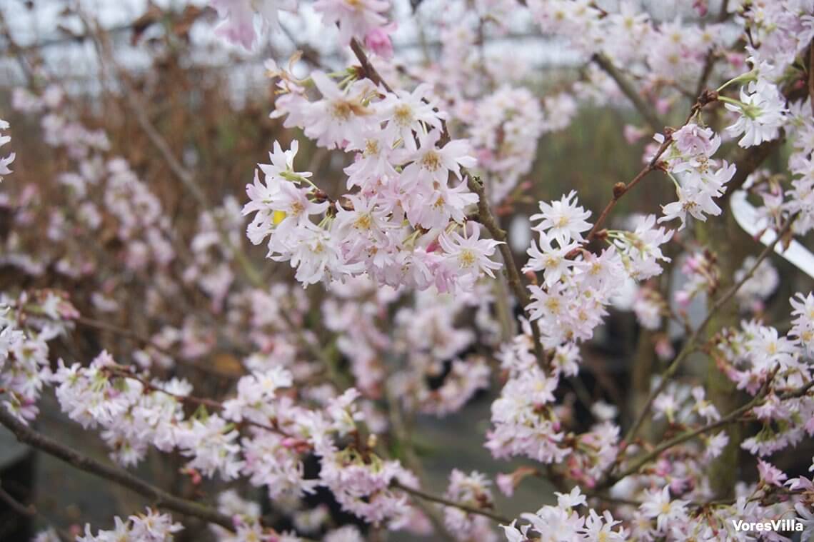 Der findes flere buske og træer, der faktisk blomstrer i de kommende måneder og helt frem til december. Se bare Oktoberkirsebær, Prunus subhirtella ’Autumnalis’. Det er et lille træ, der vil klæde de fleste forhaver smukt. Oktoberkirsebær bliver 4-5 meter højt og passer dermed i størrelsen til et almindeligt hus. Også god i gårdhaver. Er vejret koldt, udskydes blomstringen til det tidligste forår.