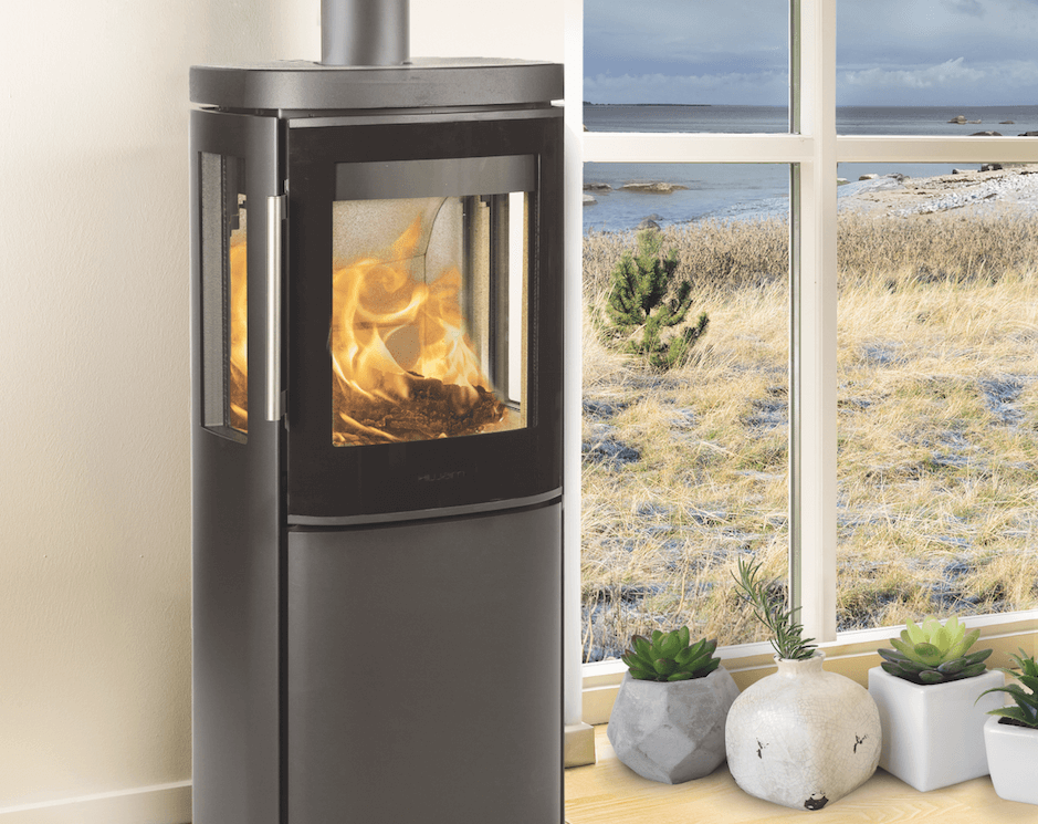 Pris: 4995 kr. inklusiv trådløs rumtemperaturføler med lys- og lydalarm for påfyldning af brænde, app download via IOS og Google Android og løbende opdateringer.