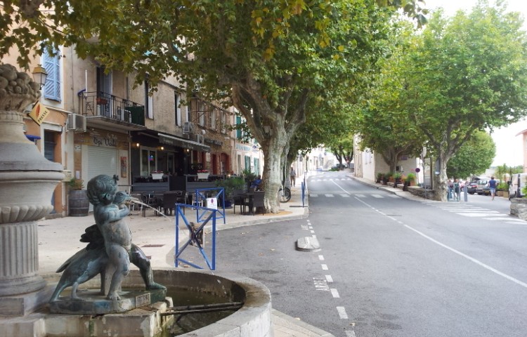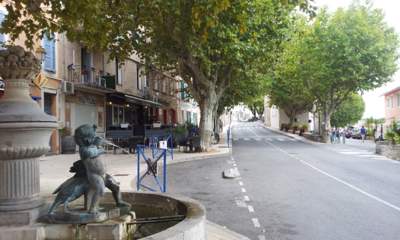 Denne fantastiske indkøbsdag blev afsluttet i Mouans Sartoux, en lille by bag Cannes. Her var vi også sidste år, og Hr. Mand udbrød lykkeligt; ’Kan du huske restauranten på det lille hyggelig torv, med den lækre mad og rosévin? Og den sure tjener? DER skal vi hen igen’. Jaja, fint med mig, tænkte jeg. Så vidt jeg huskede lignede den sure tjener lidt George Cloony.