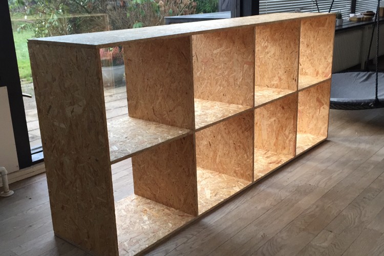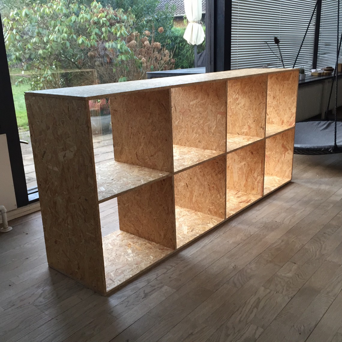 Helene syntes at reolen skulle laves ud af OSB plader, så den vil komme til at se lidt rå ud.