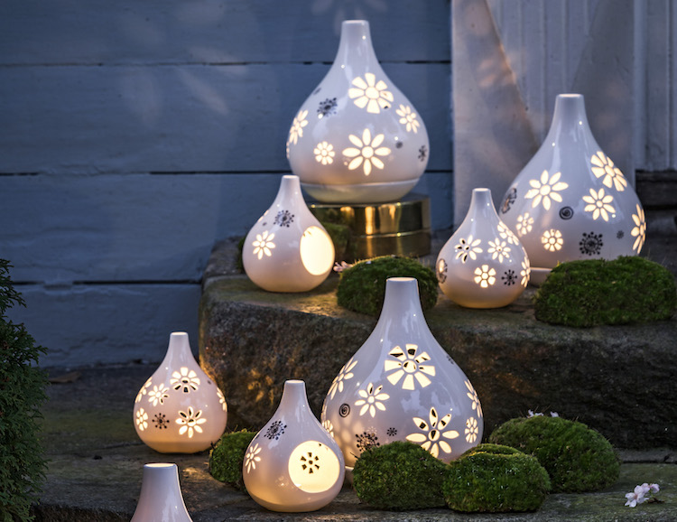 Det ligner bogstavelig talt en lys ide at konvertere Wiinblads ikoniske lågkrukker til lanterner – og Wiinblad ville uden tvivl have bifaldet det. Selv holdt han ofte middagsselskab kun i skæret fra levende lys, og med forårets nye lygtedesign er der rig mulighed for at lyse både inde- og uderummet op. Lyslygterne findes nemlig i to forskellige størrelser til hhv. bloklys og fyrfadslys og er oplagte at samle i dekorative klynger, der sender lysstrålerne ud i rummet som en hyggelig aura.