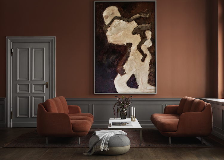 Vi har set nok til den kølige nordiske farveskala, og nu fyrer vi op for de varme og brændte nuancer, når vi indretter. Trenden har været nogle år undervejs, men nu buldrer den for alvor derudad med en bred palette af rustrød, nude, terrakotta og bordeaux. Ofte set i kombination med okker, brun og rosa.