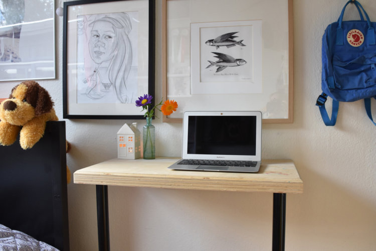 Ofte stjæler borde til børneværelser kontorer unødvendigt meget plads. Lav i stedet dit eget superflotte mini-skrivebord for ganske få penge.