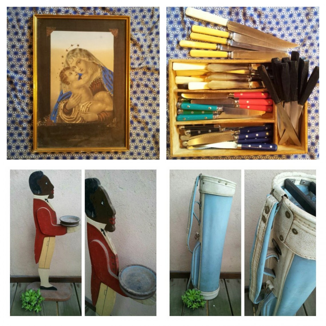 I dag var jeg på to loppemarkeder. Først et lille i Norbois, som ligger lige rundt om hjørnet fra hvor vi bor. Dejlig tæt på, så jeg kunne komme hjem med frisk morgenbrød førend den næste tur begyndte. Norbois ligger på en skråning i starten af Vogeserbjergene og det var et held at jeg havde min ’farmorindkøbsvogn’ med, for jeg fandt selvfølgelig et klapbord med det skønneste 50’er motiv og endnu et vinplukkerkar. Folk grinede og heppede da jeg masede mig forbi dem op gennem gaderne, flere gange denne morgen.