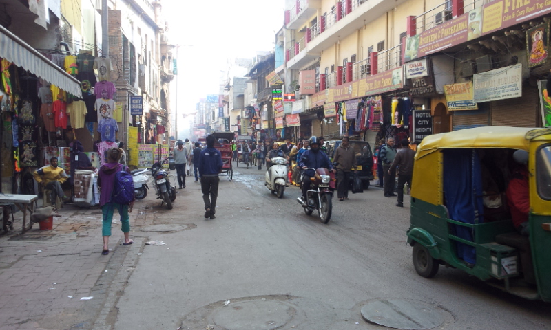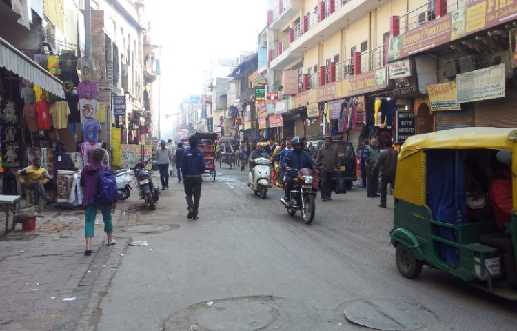 Main Bazar ligger tæt på den store banegård, ved den gamle bydel. Og det første der slår én når man i taxaen, kører væk fra de store alleer og ind i de smalle gader, er larmen. Larmen fra lastbiler, personbiler, motorrichshaw, cykelrichshaw, almindelige cykler, mennesker, hunde, højtalere, motorcykler osv.