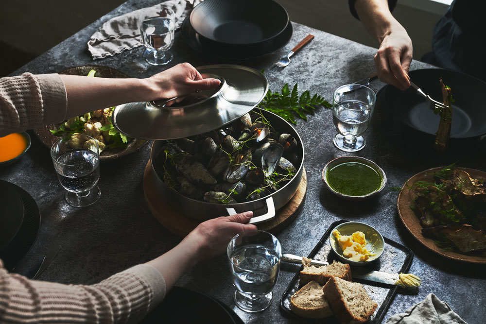 Med pander i tre størrelser, to gryder, en sauterpande, to kasseroller, et stegefad og en wok matcher Fiskars nye køkkenserie, Norden Steel, behovene hos de fleste madentusiaster.