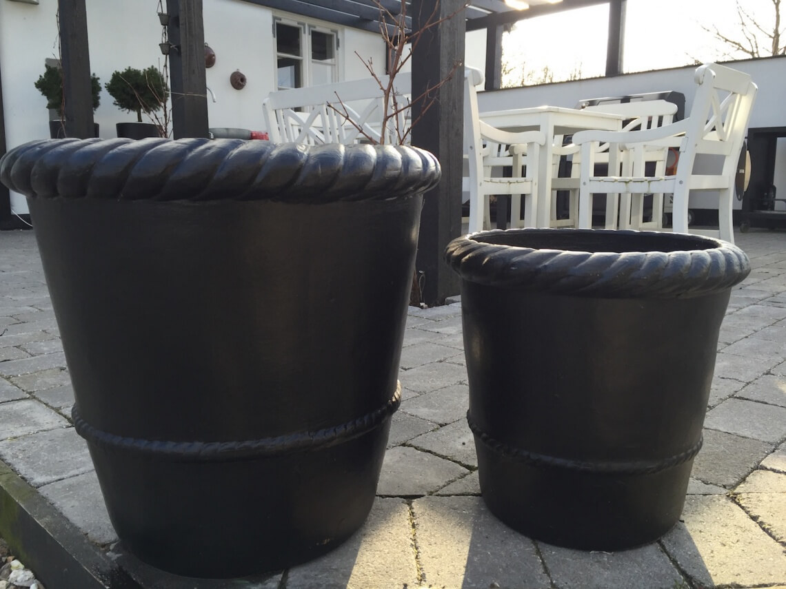 Terracotta krukker, støbte cementkrukker, zink krukker og plastik krukker. Der findes mange varianter, og alle kan shines op.