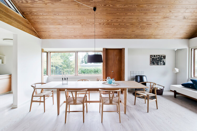 – Men forelsket som jeg var i huset og især i loftet, tog jeg min elskede i forsvar. Ingen skulle lave om på noget så fint. Jeg tilhører en generation, som virkelig har malet meget smukt træværk hvidt. Men loftet her er af de fineste Pitch Pine brædder, som for alt i verden ikke skal skjules af maling”, siger Pernille. En beslutning hun ikke har fortrudt.