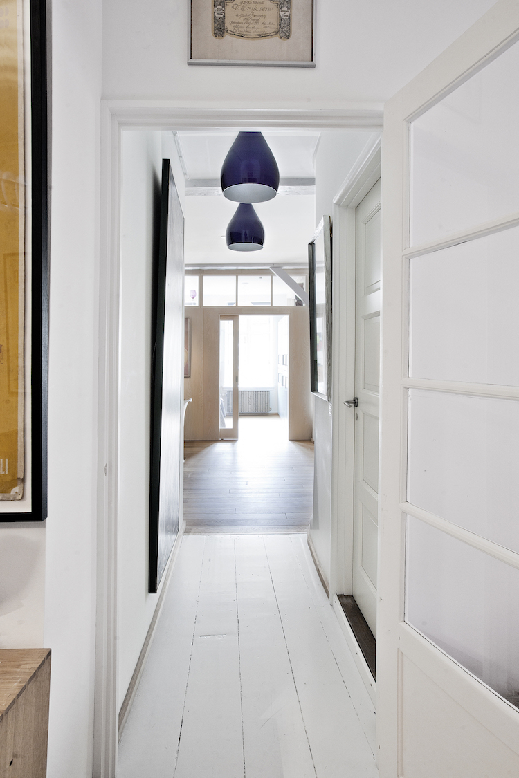 Arkitekt Thomas Hjort har arbejdet målrettet med at få lys ind fra flere vinkler og gennemlyse større dele af lejligheden ved at åbne lejligheden op med glaspartier i væggene. En ny indretning af køkkenet, hvor der er skabe langs væggen og en bevægelig hakke-snitte-ø i midten i stedet for en stor køkkendisk har også skabt mere lys og rum.