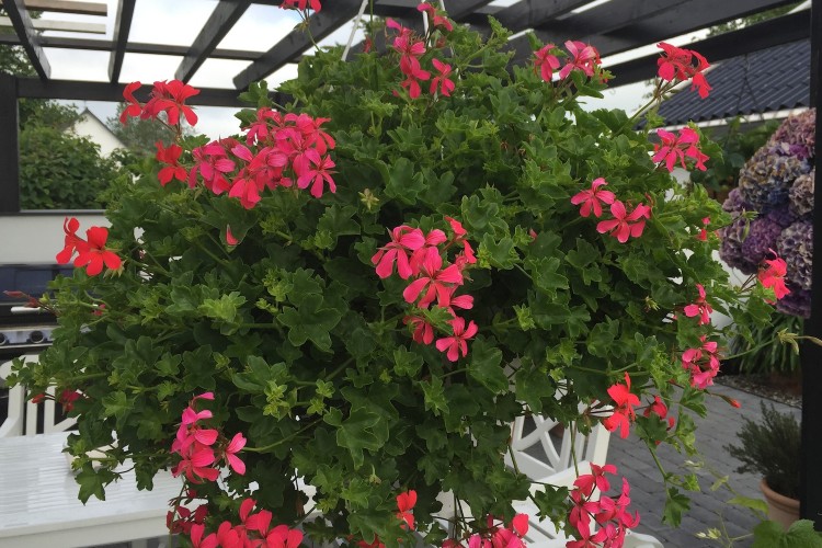 Hængepelargonier kan blomstre hele sæsonen fra april til oktober og er ret nemme at opbevare over vinteren, hvis man ønsker en endnu større plante året efter. De kan blive lidt ranglede at se på, men knib endelig løs og giv plads til nye skud. Det er også nemt at tage stiklinger fra planten og starte på en frisk, hvis moderplanten er blevet for uglet at se på.
