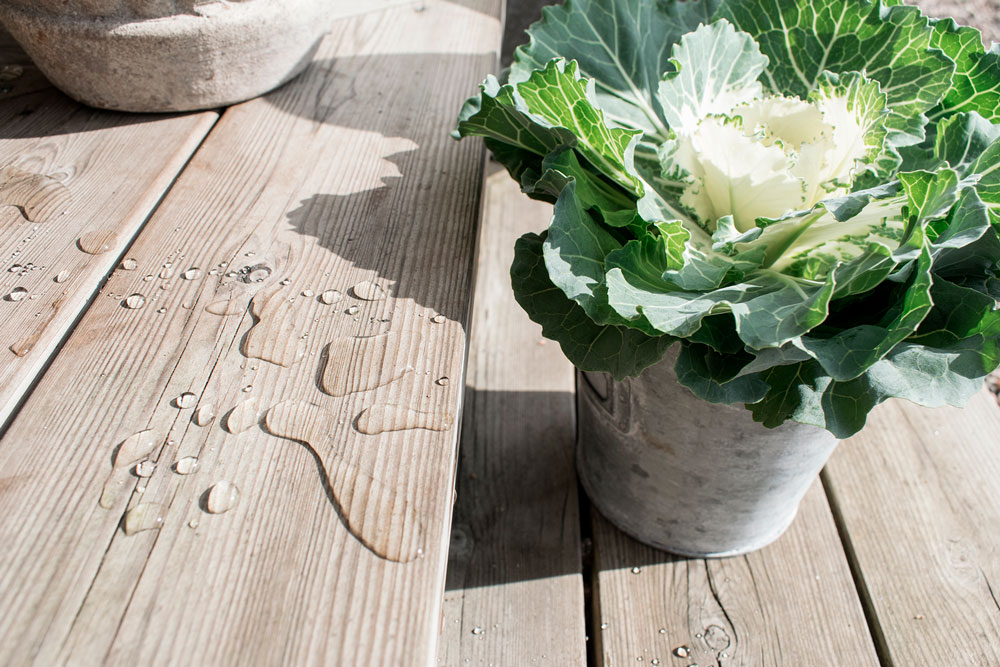 Vådt træ kan nemlig ikke suge olie. Derfor skal du sørge for, at vejret er så godt, at terrassen kan tørre tilstrækkeligt. Med en våd og fugtig vinter i bagagen vil midt april eller start maj være et godt tidspunkt.