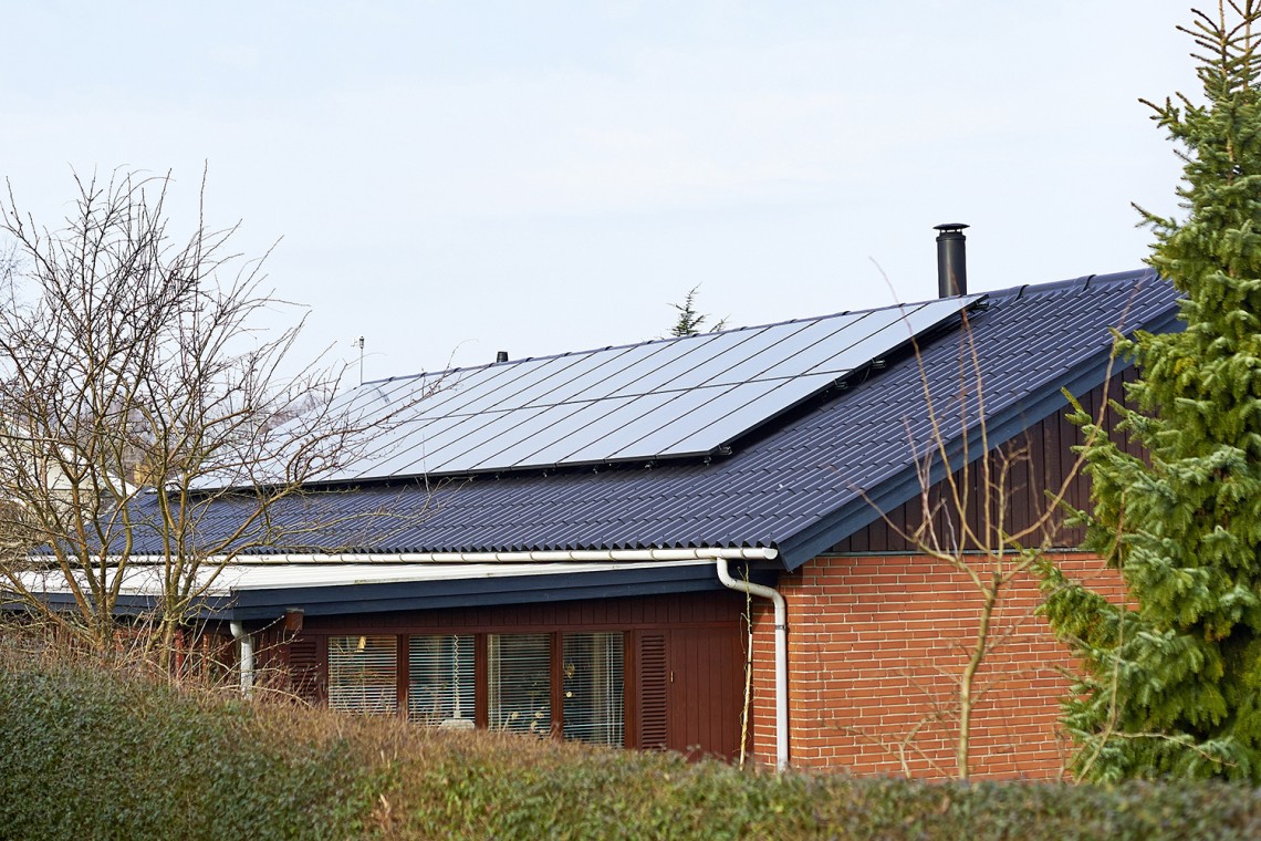 Solcellerne på taget producerer årligt omkring 5.500 kilowatttimer el, og det går lige op med husstandens forbrug inklusiv den energi, det kræver, at drive hybridanlægget.