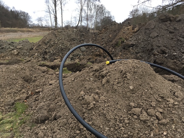 I Danmark lægges jordvarmeslangen oftest i snoninger med ca. en meters afstand i cirka en meters dybde i haven. Typisk skal der anvendes 150-200 meter jordslange for hver 100 kvadratmeter boligareal, der skal opvarmes.