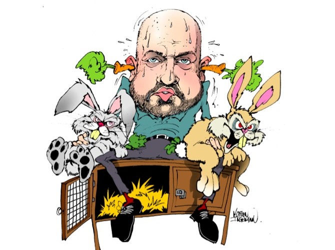 Hjemme indtager vi naboens have og får flot hjælp af den hjemmegående nabokone, der beklageligvis i sin iver efter at hjælpe siger nogle mærkelige, høje lyde, som vi tror, at hun tror er de gældende kaninfangerlyde. Det er de helt klart ikke, for vores to halvtamme dyr bliver bare endnu mere stressede og vilde i deres bevægelsesmønstre.