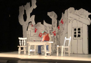 Malthe har sin seks-årige fætter Isak med i den helt fantastiske 73-årige teatersal. Der er noget urTivoli over stedet, og med intro fra Tivoli gardens fabelagtige musikintro er vi klar til klatremus, Morten Skovmus, Mikkel Ræv, Bamsefar og bagermester Harepus, som sammen kan noget helt særligt.