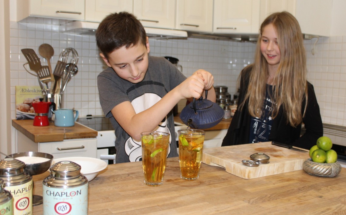 Borneferie.dk har bedt Jais Lauritsen, fra Chaplon te, om at samle sine børn og lade dem lave en lækker, nem, rimelig sund, læskende og frisk iste, som kan laves af børn på kort tid, og at dømme efter de mange grin, sjove fagter og resultatet, så er det en både smagfuld og sjov måde, at lave sin egen eftermiddags-drik på.