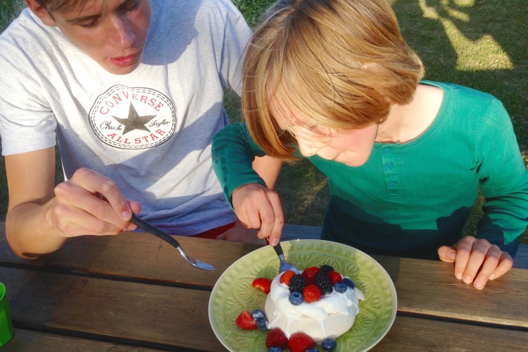 Sensommeren er oplagt til at tage ungerne med i haven eller naturen for at finde bær til fælles fremstilling af Pavlova.