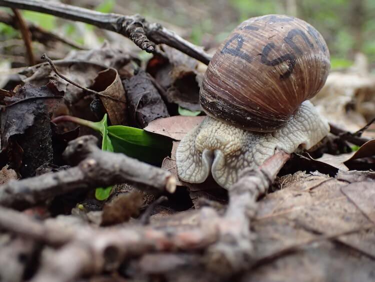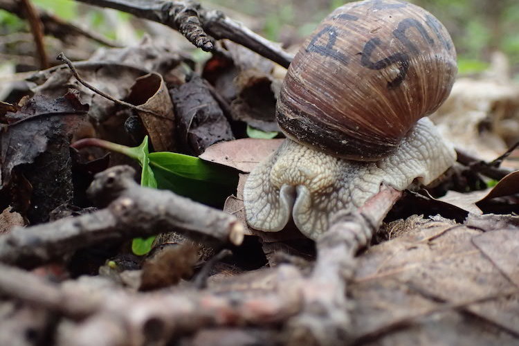 Men giver man en Vinbjergsnegl et navn eller et mærke, kan man muligvis følge den i mange år. Den graver sig nemlig ned i efteråret når det bliver koldt, og kommer frem igen i foråret. Brug en sprittusch eller poscatusch og skriv forsigtigt på sneglehuset. Sæt så sneglen fri i haven, parken et et område du komme ofte. Måske vil du senere på sommeren eller endda årene efter, kunne støde på den samme snegl. I går fandt jeg “Pizzasnegl” fra sidste år.