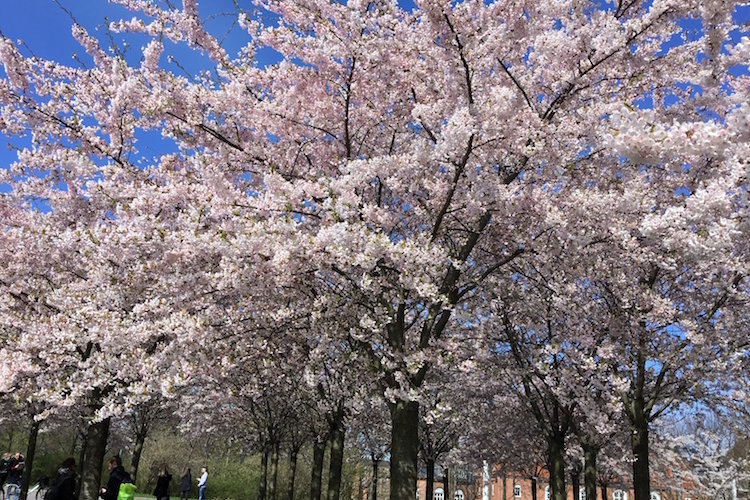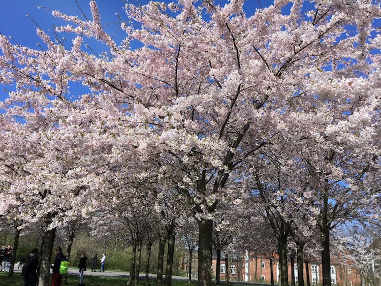 Kirsebærtræerne blomstrer langt ind i maj, så det er også muligt at gå en tur i villakvartererne, og nyde haverne træer, og finder I et rigtig smukt træ, så spørg om lov til at komme ind i haven og nyde træet.