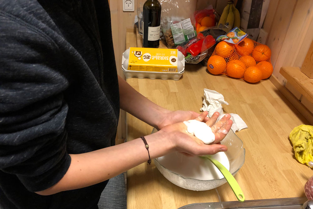 Tilsæt vand til massen er lige så tyk som mayonnaise.