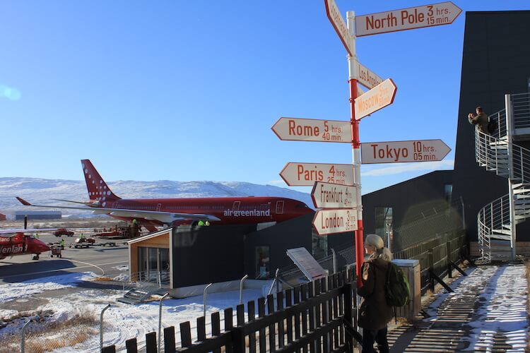 Der er så mange fantastiske ting at opleve i Grønland. Naturen får kæber til at falde og øjne til at nyde, men også i småtingsafdelingen er Grønland speciel, og i lufthavnen er der et skilt, som alle skal have et billede af.