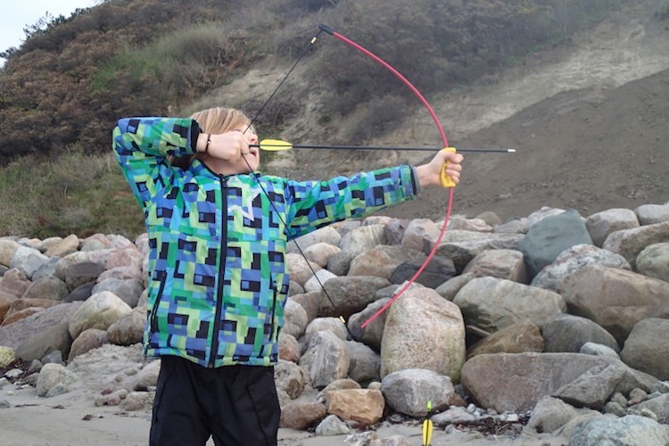 Når nu ens yngste søn er til natur og bue og pil, så er det nogle gange en opgave at finde et egnet sted og tidspunkt at træne pileskydning, men efteråret eller den milde vinter er geniale tidspunkter at tage en tur på en af de bedste øvebaner, stranden. Det gode er, at der næsten ikke er andre mennesker, og der er gode muligheder for at få lov til at skyde pile så langt øjet og buen rækker.