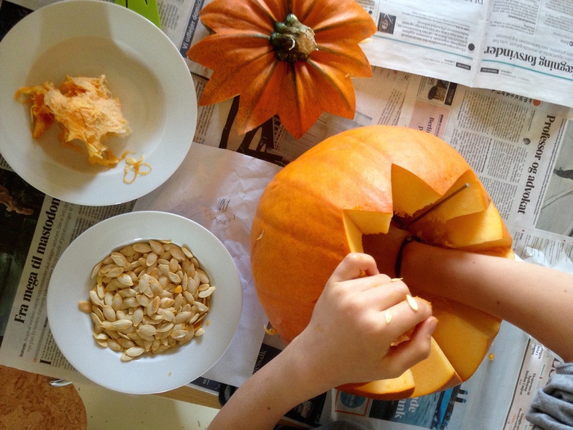 Snaskende hænder glinser af trevlet græskar-indmad mens øjnene er fokuserede på kunstværket, der er ved at tage form på køkkenbordet. Når efteråret melder sig og amerikanerne skriger på Halloween, så er der en god mulighed for at lokke et skævt græskar-hoved ud af en haveentusiast eller et supermarked, for der er mange timers god underholdning i at skabe det uhyggelige ansigt med lys til haven.