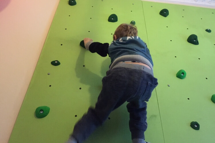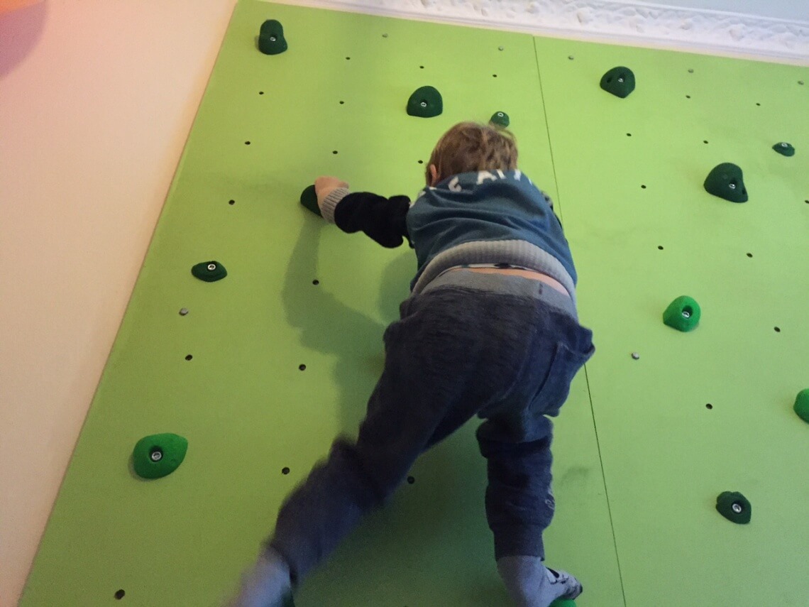 Isak ser sig hurtigt omkring, nikker til sin onkel og kaster sig ud i en klatretur mere. En kort klatretur er en noget hurtigere måde at få en succesoplevelse på end en 90 minutters fodboldkamp, og det er bare sejt, at kunne invitere vennerne hjem til en kop te, en bolle og en klatretur i soveværelset.