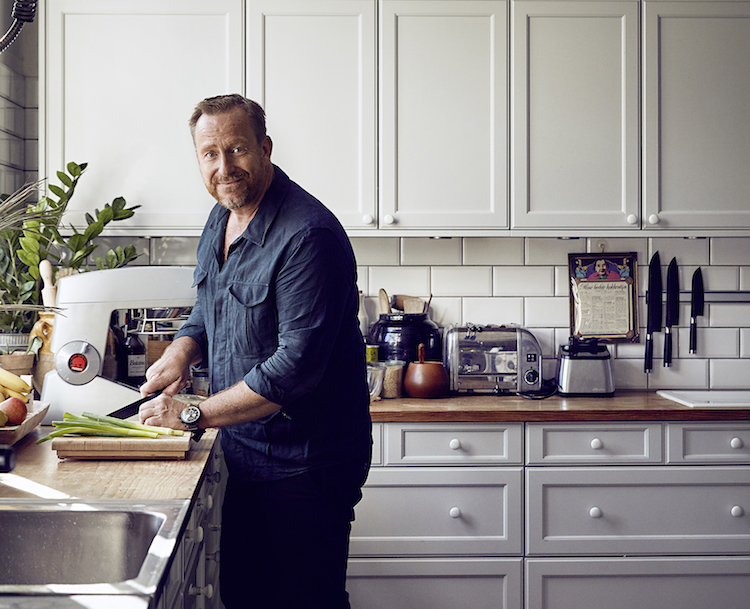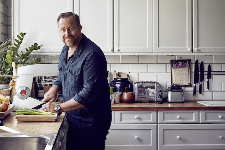 “Der var jo intet, der var tilfældigt, når vi talte om mad. I min familie smører vi ikke bare en mad, vi tager altid stilling til, hvad er der på den, og ’hvad er det for en pølse?’ Når jeg køber madvarer, er der ikke én af dem, der ikke er valgt på dens kvaliteter, og det er jo, fordi vi fra helt små har fået at vide: ’prøv at duft til den her’ og ’se den her’. Det ligger så dybt, at man er nødt til at gå ud fra nogle ordentlige råvarer, at jeg ikke gider købe noget, andre har forarbejdet – jo, altså sennep og den slags, men jeg gider ikke købe færdigretter, for hvorfor skulle jeg dog det, når jeg nu elsker selv at lave det?” forklarer han og sætter den ultimative trumf på: