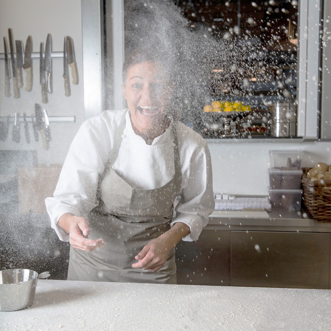 ‘Jeg er opvokset med en mor og far, som lavede alt fra bunden. Født ind i at man da lavede sin egen marmelade og pressede sin egen rullepølse. Derfor har jeg heller ikke den tilgang til ting hjemmefra, at det skulle være en stor proces at bage en kage eller et franskbrød. Og 1000 tak for det’, smiler hun. ‘Hvad man bliver, hænger nok sammen med, hvad livet byder én. Jeg tvivler på, at de færreste store hjemmegastronomer har mødre, som aldrig gad stå med en grydeske i hånden’.