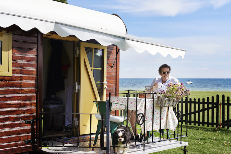 De stemningsfulde omgivelser danner rammen om Søren Østergaards rullende sommerhjem, som han bebor fem måneder i træk. Resten af året deles mellem hans og hustruen Lisbet Lundquists taglejlighed i København, deres sommerhus i Hornbæk og ferieboligen i Thailand.