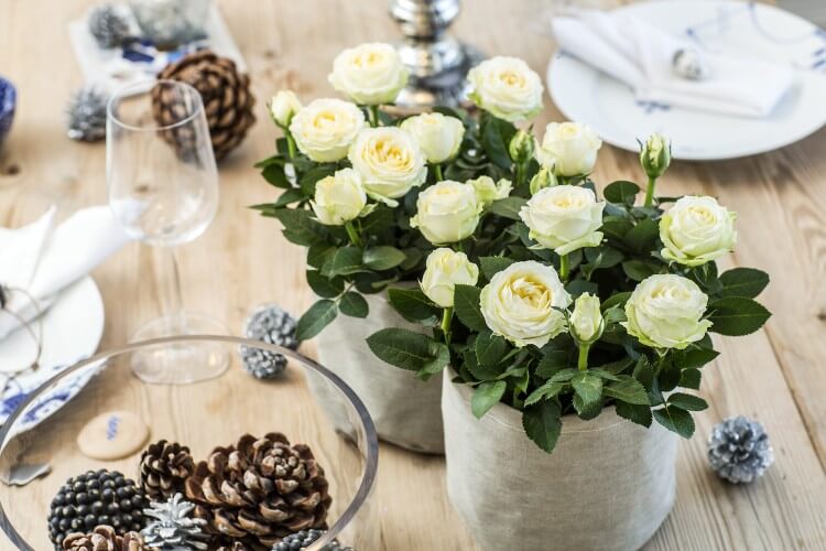 Roserne kan pynte på såvel julebordet som udenfor ved fordøren eller på terrassebordet. For så længe temperaturen holder sig over 1oC, kan roserne sagtens anvendes udenfor, hvor de sammen med fx hyggelige lygter og lanterner pynter og skaber stemning.